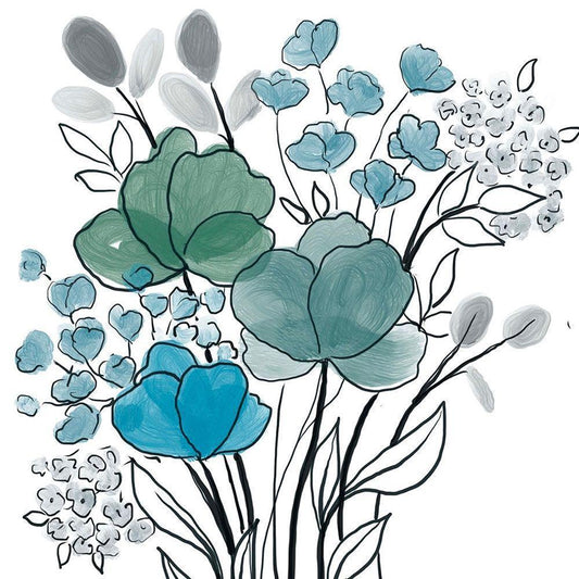 Teal Bouquet Gold Ornate Wood Framed Art Print with Double Matting by Boho Hue Studio