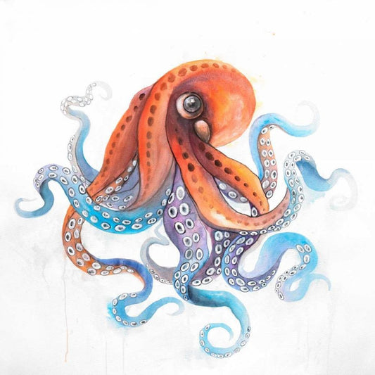 Watercolor Octupus Gold Ornate Wood Framed Art Print with Double Matting by Atelier B Art Studio