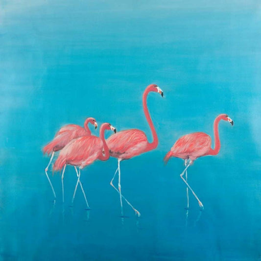 Four Flamingos Gold Ornate Wood Framed Art Print with Double Matting by Atelier B Art Studio