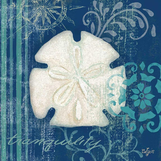 Navy Blue Spa Shells II Gold Ornate Wood Framed Art Print with Double Matting by Lyon, Rebecca