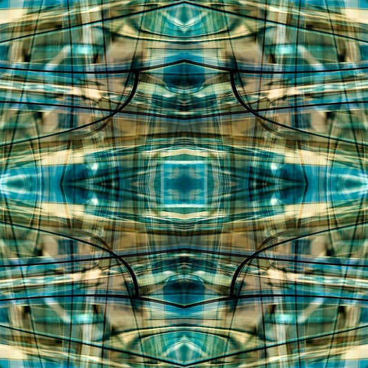 Turquoise-black and bronze metallic abstract Gold Ornate Wood Framed Art Print with Double Matting by Jaynes Gallery