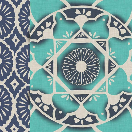 Turquoise Textile II Gold Ornate Wood Framed Art Print with Double Matting by Vess, June Erica