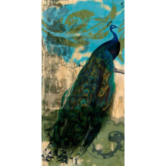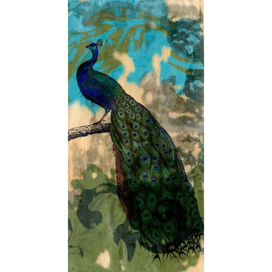 Rustic Peacock I Gold Ornate Wood Framed Art Print with Double Matting by Goldberger, Jennifer