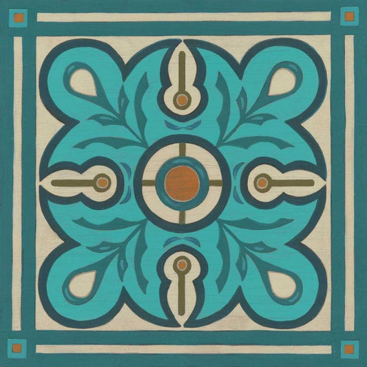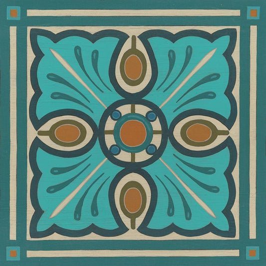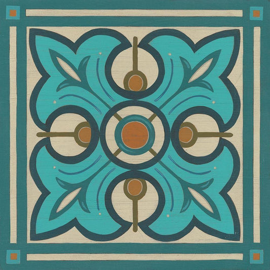 Piazza Tile in Blue IV Gold Ornate Wood Framed Art Print with Double Matting by Vess, June Erica