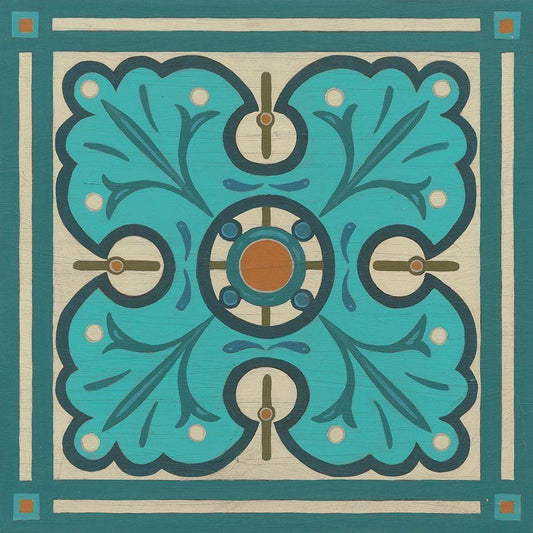 Piazza Tile in Blue I Gold Ornate Wood Framed Art Print with Double Matting by Vess, June Erica