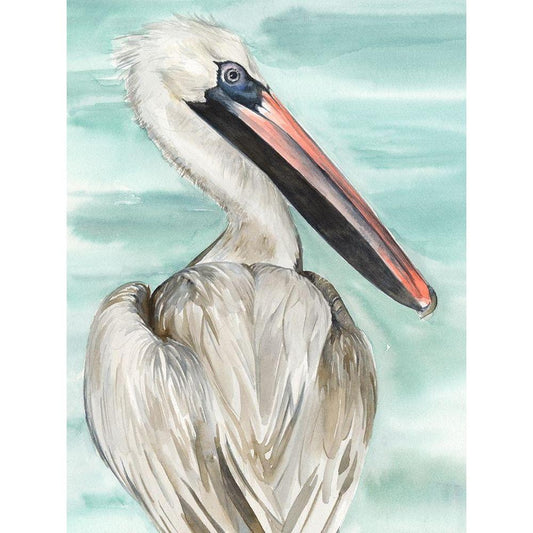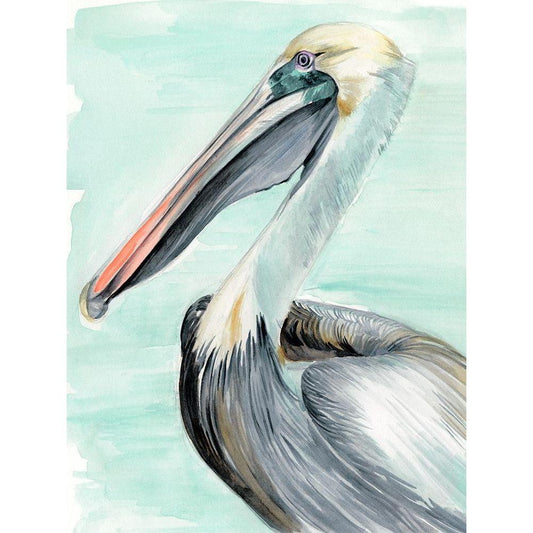 Turquoise Pelican I Gold Ornate Wood Framed Art Print with Double Matting by Parker, Jennifer Paxton