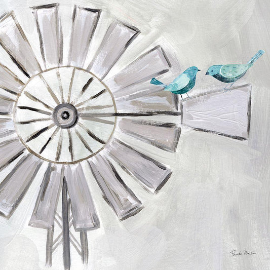 Farmhouse Windmill with Birds Gold Ornate Wood Framed Art Print with Double Matting by Zaman, Farida