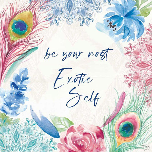 Peacock Glory Pattern IVA Gold Ornate Wood Framed Art Print with Double Matting by June, Dina