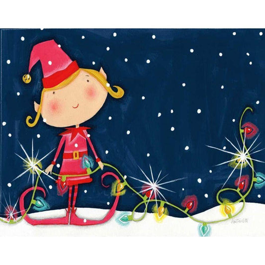 Bright Christmas Lights Elf Blue Gold Ornate Wood Framed Art Print with Double Matting by Tavoletti, Anne