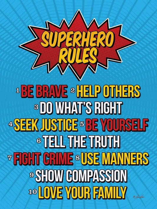 Superhero Rules White Modern Wood Framed Art Print with Double Matting by Rader, Lauren