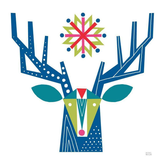Geometric Holiday Reindeer I Bright Black Modern Wood Framed Art Print by Mullan, Michael