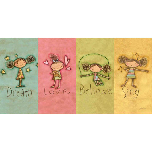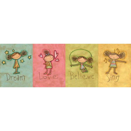 Dream Love Believe Sing Panel v3 Black Modern Wood Framed Art Print by Tavoletti, Anne
