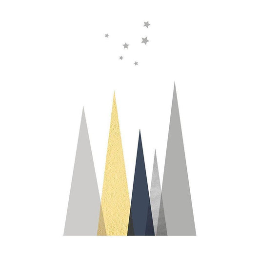 Navy Yellow Grey Mountains 1 Black Modern Wood Framed Art Print by Urban Epiphany
