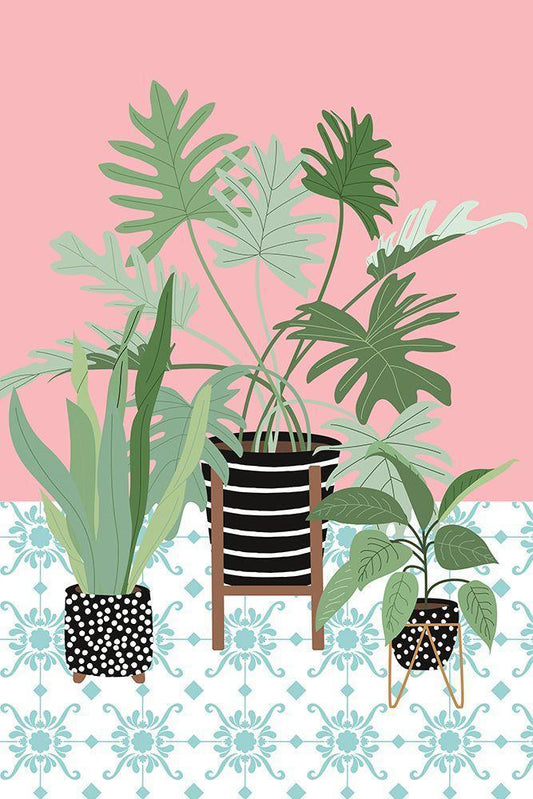 Potted Plants White Modern Wood Framed Art Print with Double Matting by JJ Design