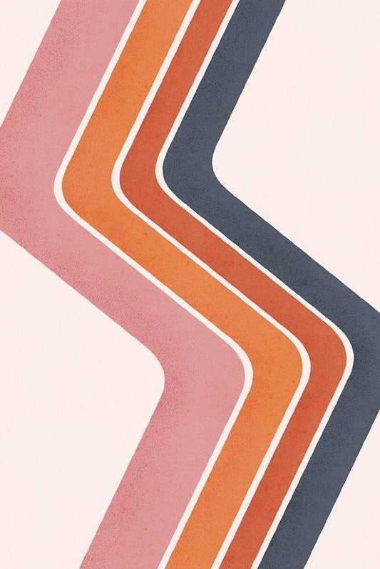 Zig Zag Rainbow White Modern Wood Framed Art Print with Double Matting by JJ Design