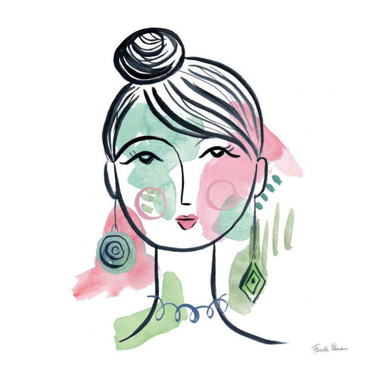 Pretty Faces IV White Modern Wood Framed Art Print with Double Matting by Zaman, Farida