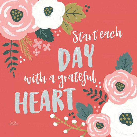 Wildflower Daydreams VII Grateful Heart White Modern Wood Framed Art Print with Double Matting by Marshall, Laura