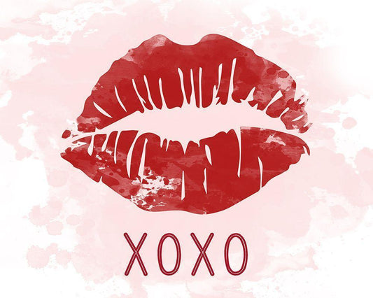 XOXO Lips White Modern Wood Framed Art Print with Double Matting by Carpentieri, Natalie
