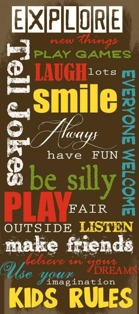 KIDS RULES White Modern Wood Framed Art Print with Double Matting by Greene, Taylor