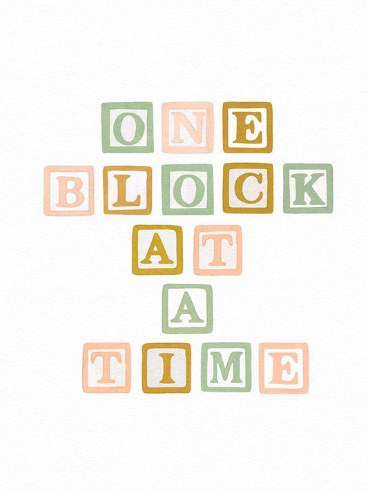 One Block At A Time White Modern Wood Framed Art Print with Double Matting by Straatsma, Leah