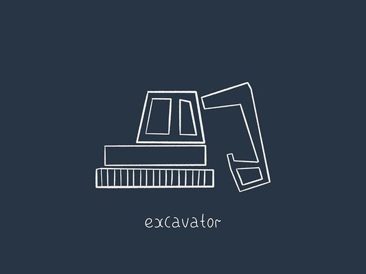 Excavator Navy White Modern Wood Framed Art Print with Double Matting by Straatsma, Leah