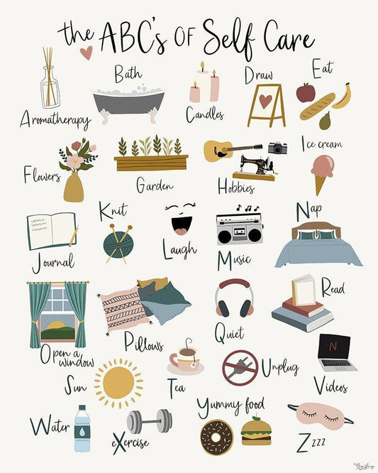ABC Self Care White Modern Wood Framed Art Print with Double Matting by Louise, Gigi