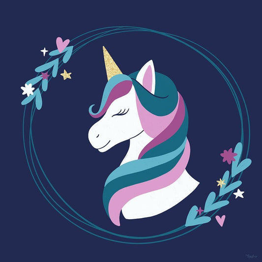 Unicorn Center White Modern Wood Framed Art Print with Double Matting by Louise, Gigi