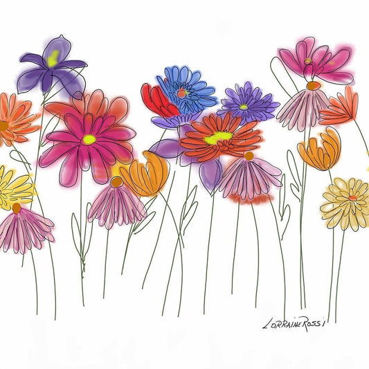 Field of Flowers A White Modern Wood Framed Art Print with Double Matting by Rossi, Lorraine