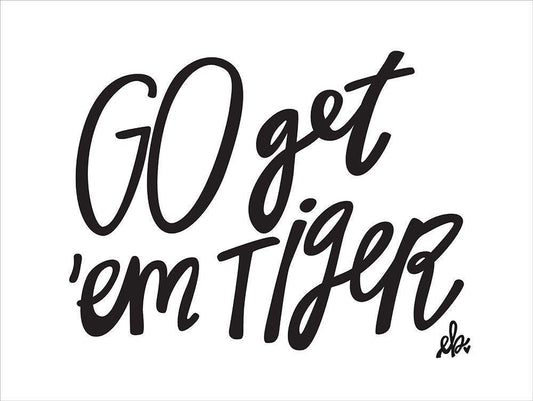 Go Getem Tiger White Modern Wood Framed Art Print with Double Matting by Barrett, Erin