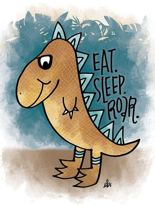Eat, Sleep, Rawr White Modern Wood Framed Art Print with Double Matting by Barrett, Erin