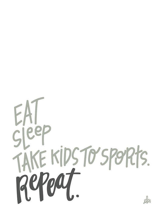 Eat Sleep Sports Repeat White Modern Wood Framed Art Print with Double Matting by Barrett, Erin