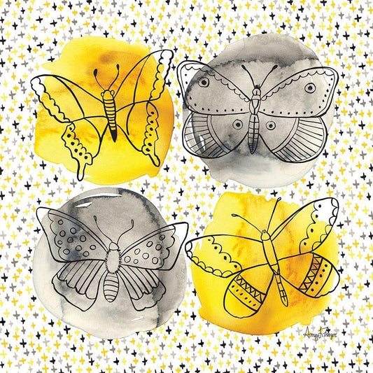 Gray and Yellow Butterflies I White Modern Wood Framed Art Print with Double Matting by Frazer, Amy