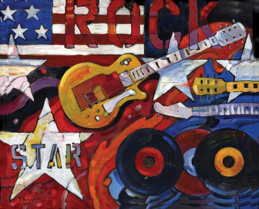 Rock N Roll White Modern Wood Framed Art Print with Double Matting by Brent, Paul