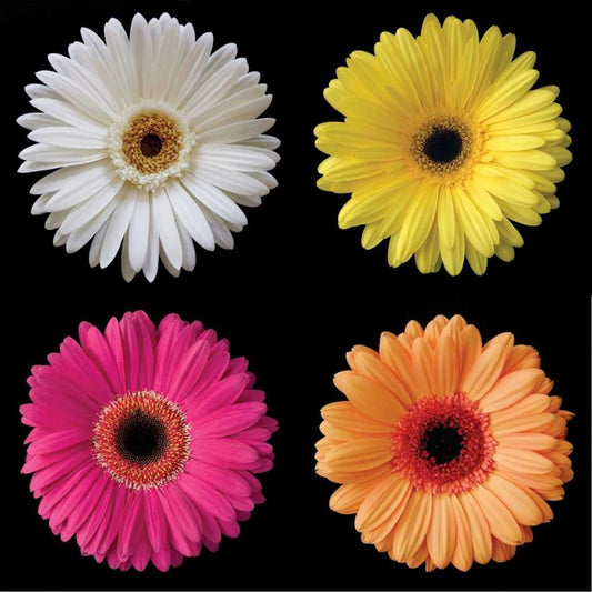 Gerbera Group I White Modern Wood Framed Art Print with Double Matting by Christensen, Jim