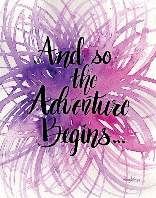 Adventure Begins White Modern Wood Framed Art Print with Double Matting by Frazer, Amy