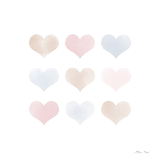 Watercolor Hearts Black Ornate Wood Framed Art Print with Double Matting by Ball, Susan