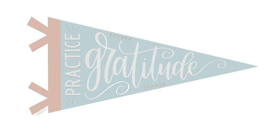 Practice Gratitude Pennant White Modern Wood Framed Art Print with Double Matting by Imperfect Dust