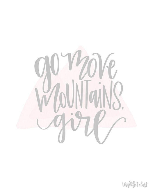 Go Move Mountains Girl White Modern Wood Framed Art Print with Double Matting by Imperfect Dust