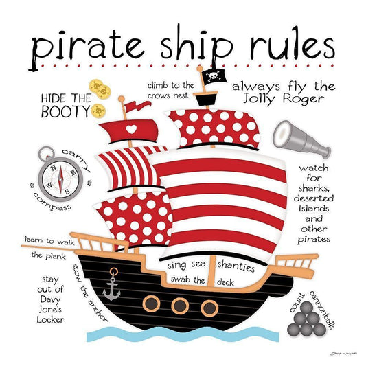 Pirate Ship Rules White Modern Wood Framed Art Print with Double Matting by Marrott, Stephanie