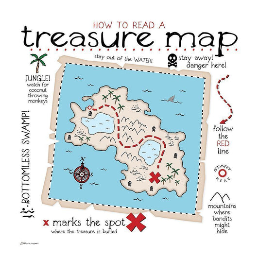 Treasure Map White Modern Wood Framed Art Print with Double Matting by Marrott, Stephanie