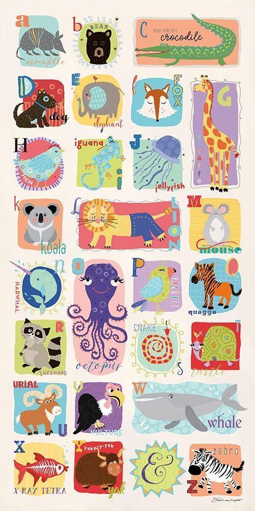Animal Alphabet White Modern Wood Framed Art Print with Double Matting by Marrott, Stephanie