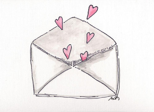 Valentine Letter White Modern Wood Framed Art Print with Double Matting by Strong, Molly Susan