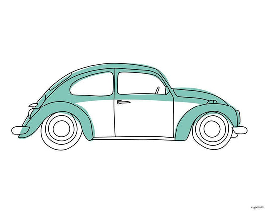 Teal Car White Modern Wood Framed Art Print with Double Matting by Brown, Kyra