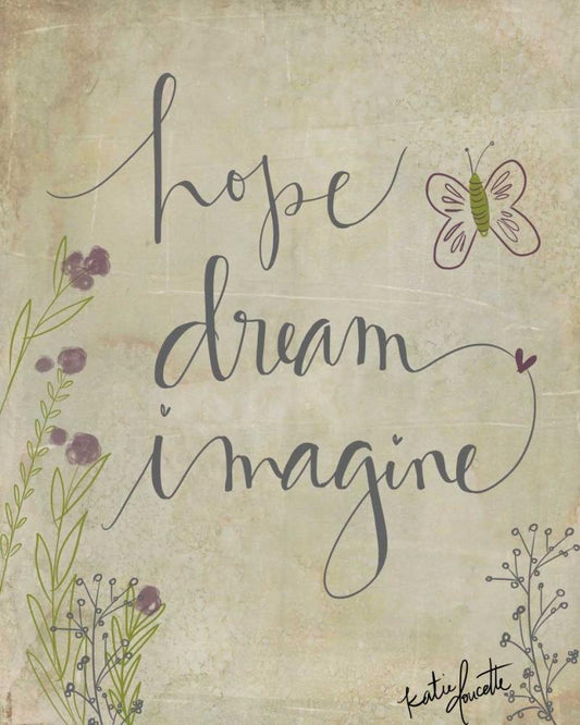 Hope, Dream, Imagine White Modern Wood Framed Art Print with Double Matting by Doucette, Katie