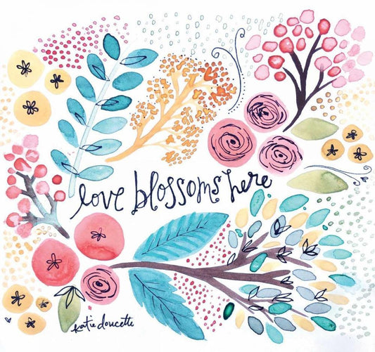 Love Blossoms Here White Modern Wood Framed Art Print with Double Matting by Doucette, Katie