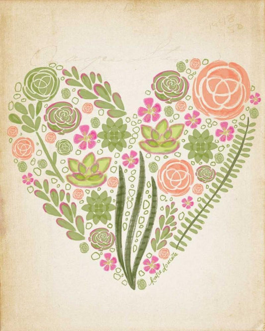 Succulent Heart White Modern Wood Framed Art Print with Double Matting by Doucette, Katie