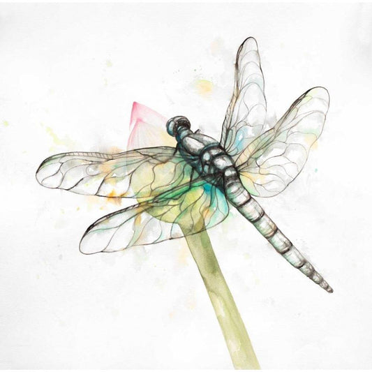 Dragonfly on a Flower Bud Black Modern Wood Framed Art Print by Atelier B Art Studio