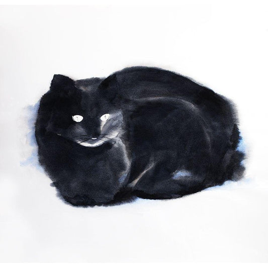 FURRY BLACK WATERCOLOR CAT Black Modern Wood Framed Art Print by Atelier B Art Studio