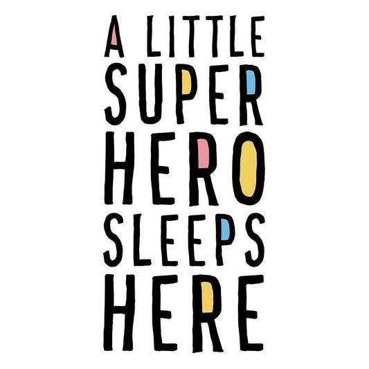 A Little Superhero Sleeps Here Black Modern Wood Framed Art Print by Masey St. Studios