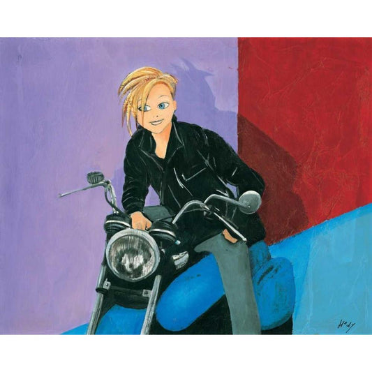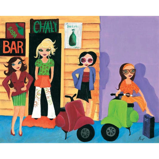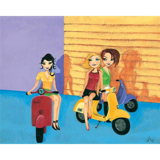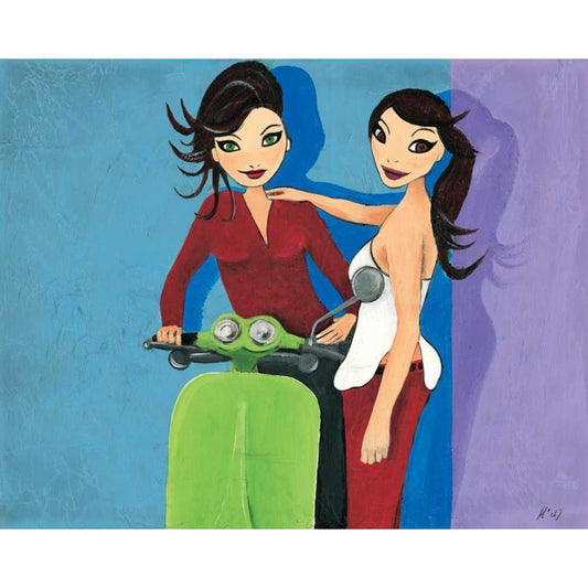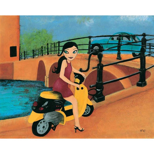 Scooter fun II Black Modern Wood Framed Art Print by Hedy